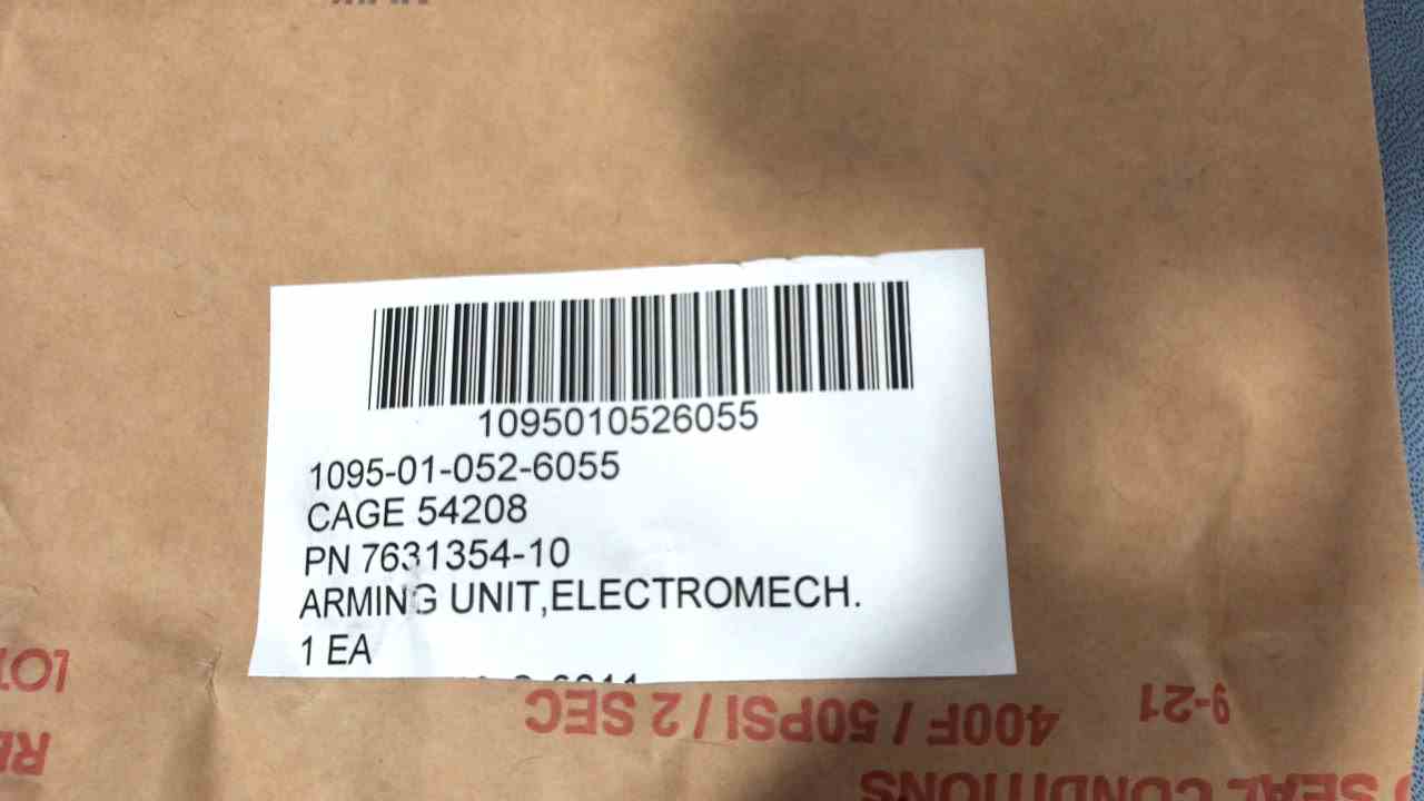 Electromechanical Arming Unit. Cage code 54208 NSN 1095-01-052-6055, 7631354-10 Boeing part number 8610131